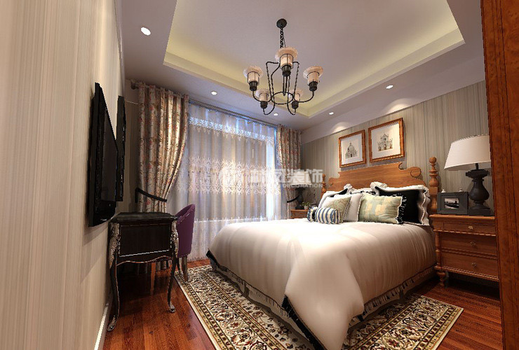 臥室還是跟整體風格統(tǒng)一,同時也充分利用空間,在放下兩個床頭柜的同時,床尾可以放一個梳妝臺