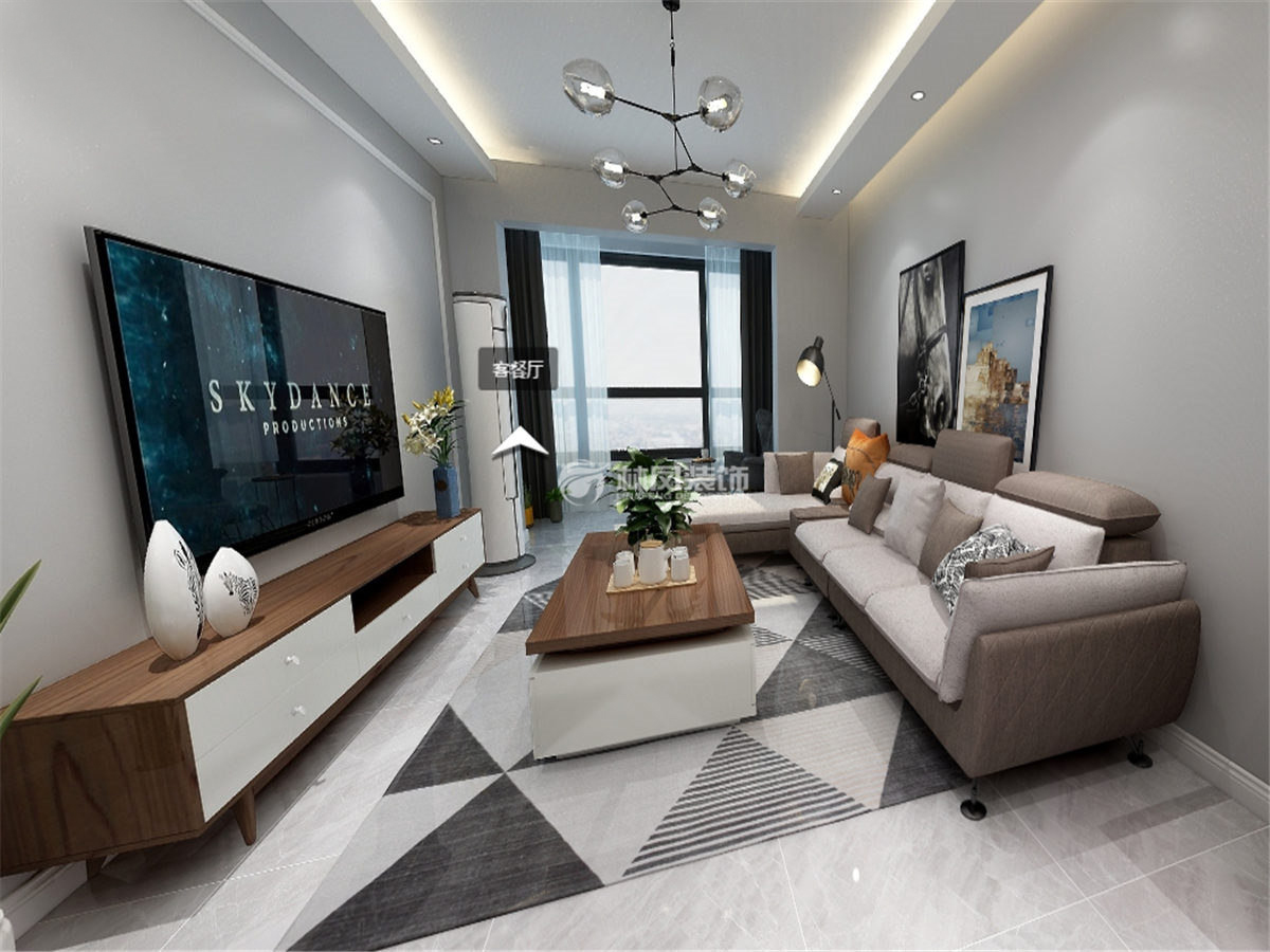 華潤二十四城94平2居室現(xiàn)代風(fēng)格林鳳裝飾的客廳的設(shè)計不僅時尚,更顯溫馨感,木制的電視柜與茶幾完美的與古典結(jié)合。裝飾畫的選擇也起到了點明主題的作用。