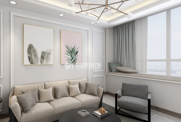 紫提東郡78平2居室現(xiàn)代風(fēng)格林鳳裝飾的客廳空間墻面以素色為主,搭配一些石膏線造型來點(diǎn)綴,簡約卻不簡單,整體空間寬敞明亮,更適合平時(shí)工作壓力大的當(dāng)代年輕人,作為一個(gè)回家之后能夠完全放松的休息空間。