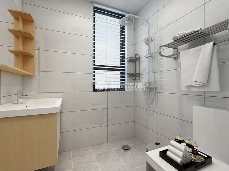 奧園國際城76平兩室兩廳北歐風(fēng)格林鳳裝飾的衛(wèi)生間的面積比較小。比較想利用率高一些。所以我們在家具上做了修飾。比如在洗手盆上做一些儲物的設(shè)計(jì)。增加視覺上面積擴(kuò)大的效果。潔具也選擇了原木色作為搭配。不失北歐的主色調(diào)。