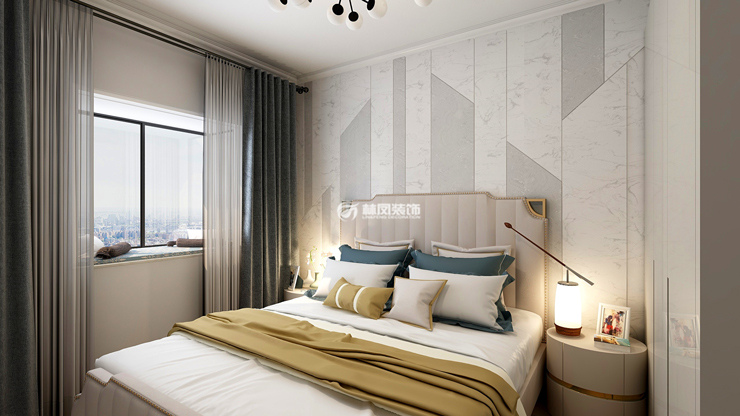 龍湖西府原著115平三室兩廳現(xiàn)代風(fēng)格林鳳裝飾的主臥采用高級灰的顏色,一直覺得灰色才是神秘色,可鹽可甜,高冷且柔和,背景墻布藝硬包,斜線拉伸整體舉架,暖色床品,暖光燈溫馨助眠