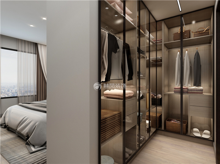 遠(yuǎn)洋大河宸章155平現(xiàn)代輕奢風(fēng)格三室兩廳林鳳裝飾的衣帽間
