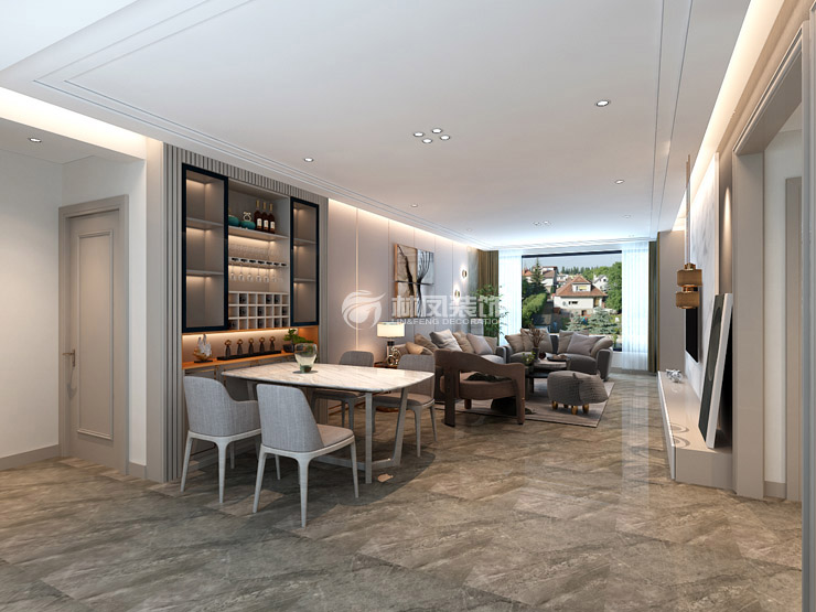 中糧花溪祥云135平四室兩廳現(xiàn)代輕奢風(fēng)格林鳳裝飾的餐廳與客廳連在一起,原始餐廳正對(duì)進(jìn)戶門(mén),位置改動(dòng)后根據(jù)整體墻面的結(jié)合,加上背景酒柜完美結(jié)合,使餐廳的達(dá)到了整體性。