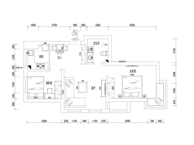 設(shè)計理念:本案是以簡介明快的設(shè)計風(fēng)格為主,小戶型重要之處在于拆改,這個弧形缺點就是沒有餐廳,客廳還比較小,拆改后的弧形每個分區(qū)的功能都得到了最大化的使用。