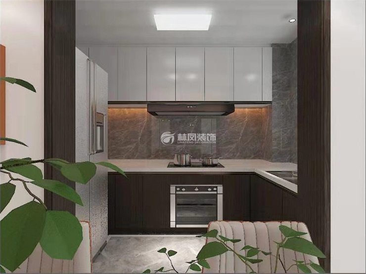 三室兩廳一廚兩衛(wèi),高層整體采用美式風格,色調以深色為主,體現(xiàn)美式的居家感和溫馨感。