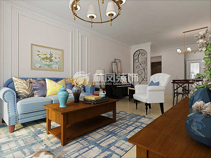 設計理念:本案風格以舒適度和實用性為主,講究的是整體的簡潔和自由,所以沒有太多的裝飾和多余的設計,但是每一處細節(jié)都體現(xiàn)出溫馨和休閑。在色彩的搭配上簡美式風格色彩非常明亮,一般選用安靜素雅的顏色,保持整體的協(xié)調性,營造出輕松、簡約的家居氛圍。