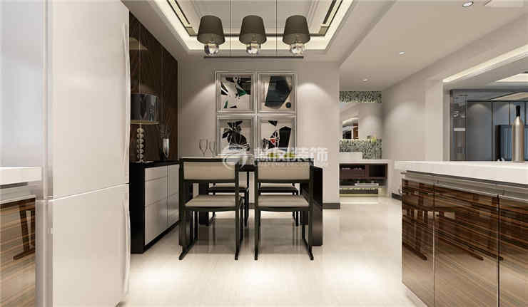 黑色餐桌搭配現(xiàn)在不銹鋼椅子加上斑馬紋餐廳背景,讓餐廳顯得特別莊重,視覺沖擊感特別強(qiáng),在就餐的時(shí)候也別有一般韻味。