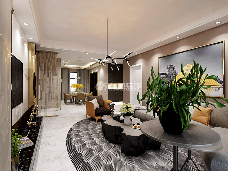 綠城全運(yùn)村128平港式風(fēng)格布置簡(jiǎn)潔,客廳的以黃色為主調(diào),展現(xiàn)一個(gè)休閑的氛圍。高級(jí)爵士白理石背景墻,配著金屬質(zhì)感的精美裝飾隔斷,打造低調(diào)奢華的整體造型,精致了細(xì)節(jié)。