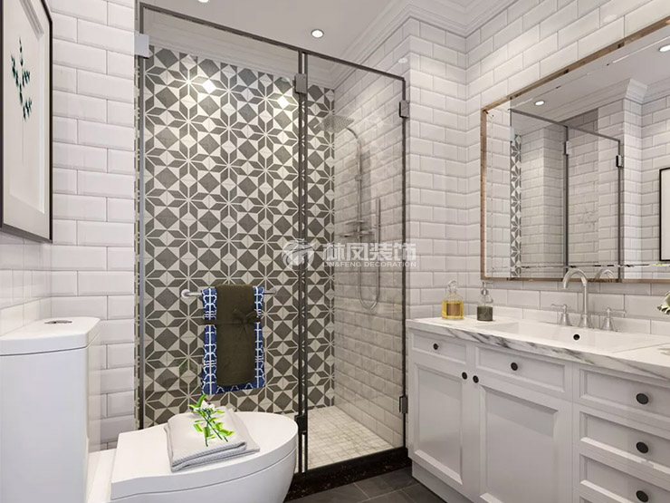 灰色的大理石鋪顯得簡(jiǎn)潔大氣,木飾面的梳妝臺(tái)柜結(jié)合狹長(zhǎng)的鏡面將現(xiàn)代風(fēng)格的輕奢氣質(zhì)延續(xù)于此 。