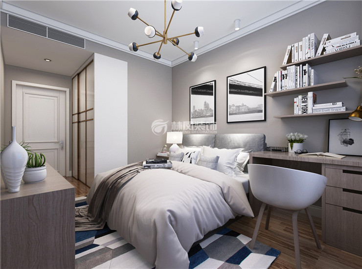 主臥室家具顏色較為穩(wěn)重,整個臥室以白色和淺灰色為主要基調(diào)進行裝飾,白色的吊頂,白色的床單,淺灰色的墻面等,使得臥室十分時尚大氣設計感十足,自然淳樸的原木色調(diào)中和了簡單的白色,讓整個臥室在簡約中充滿淳樸舒適的自然氣息。