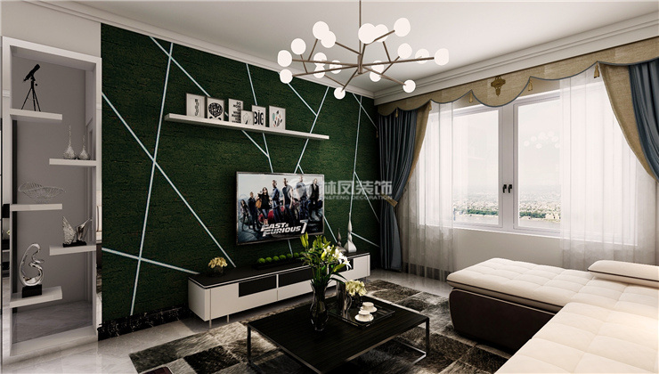 客廳的顏色偏重,由于孩子和老人的意見不統(tǒng)一,設(shè)計(jì)師大膽的運(yùn)用了材質(zhì)和顏色的搭配結(jié)合,用草綠色的硅藻泥做的現(xiàn)代感很強(qiáng)的背景墻,沙發(fā)是布藝的還是皮質(zhì)的客戶還沒有決定好,設(shè)計(jì)師推薦布藝沙發(fā)經(jīng)濟(jì)實(shí)惠,性價(jià)比高,搭配的地毯和電視柜的顏色現(xiàn)代感實(shí)足!對(duì)比效果明顯!