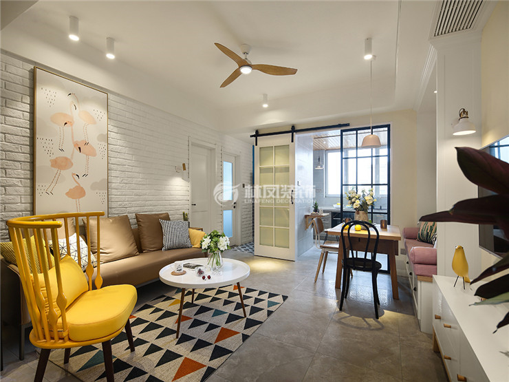 設(shè)計(jì)理念:本案例定位為北歐,業(yè)主是年輕的小兩口,特別喜歡北歐家具已經(jīng)色彩。本案圍繞“輕裝修重裝飾的理念” 硬裝并沒有鋪設(shè)太多,后期都是用軟裝來(lái)搭配。